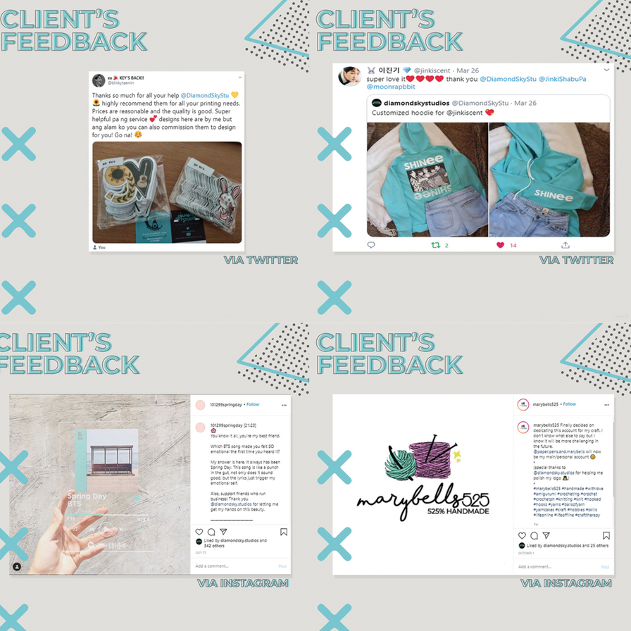 DTI/BIR REGISTEREDWe are here to cater quality prints such as T-shirts, mugs, button pins, stickers, tumblers, passport covers, and many more at an affordable price.Making ideas into reality~✧Sample & Proofs: #MoonrapbbitProofs